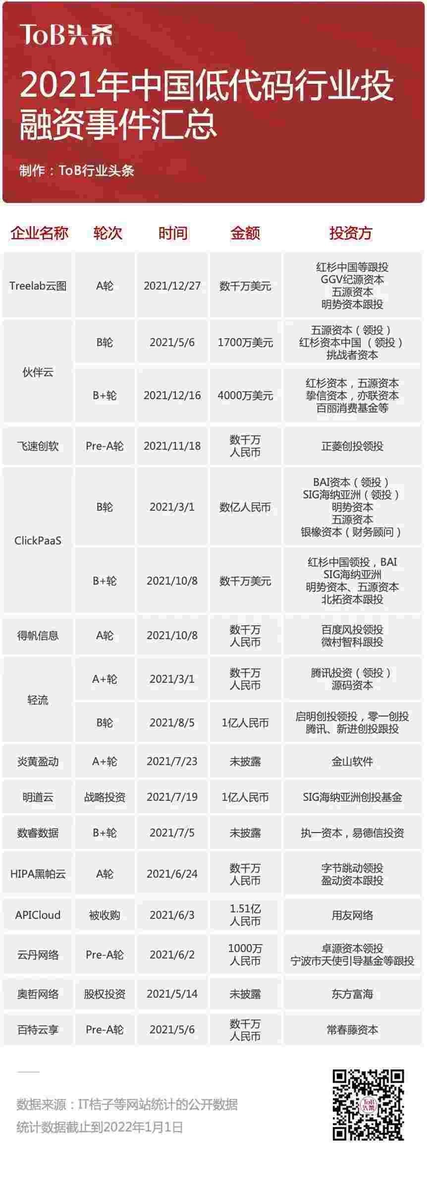 选择低代码赛道的创业型公司如雨后春笋,,随着大厂入局、、、资本进驻的大潮过后,,,整个低代码行业情况也逐渐明朗。。。任何一个行业都会经历一个周期,,,比如中台从泡沫期进入成熟期,,目前低代码行业也会一样,,从前期的蛰伏期到上升期,,低代码都呈现了一个好的迹象,,,,但很快就会进入泡沫期,,,,厂商需要找到自己的立足点,,,才能穿越周期。。。从投融资的角度来讲,,沃钱包胡柏认为以表单驱动为主的低代码平台目前已经在大厂的布局下趋于饱和,,,,已经没有太多机会留给新玩家。。其根本原因在于,,,,中国轻量化的企业服务软件市场走向一个全世界都没有的低价甚至免费的模式,,,,通过影响个人去影响团体,,,,最终走向ToB化,,最终会导致行业偏垄断化的结果。。。中国就ToB做企业服务的流量巨头已经十分明确,,,,就是以钉钉和企微为主。。。。从商业上来看,,,最终谁能够从钉钉或企业微信体系里面获得更多流量,,,就会赢得轻量化定制场景的战争。。ZOHO张伦对此也有同感,,作为一个以表单驱动为主的软件服务厂商,,,如何做到与头部分庭抗礼也是ZOHO面临的问题。。。张伦认为,,,想要保持行业竞争力,,,首先要保证产品有独特的优势,,,,要么有独立开发的脚本语言,,,要么在用户界面(User Interface,,简称UI)和用户体验(User Experience,,简称UE/UX)上做足功夫。。。而ZOHO的优势在于拥有独立开发的脚本语言Deluge,,即Data Enriched Language for the Universal Grid Environment(针对通用网格环境的数据丰富语言),,,,基于ZOHO Creator平台,,,通过使用Deluge脚本搭建的企业应用系统,,,可以很容易去贴合到应用场景里面去快速商业化变现。。而以模型驱动为主的平台在未来一两年还会再次爆发,,,,获得更多的资本青睐。。。。原因在于,,资本入驻和大厂布局思路通常是先易后难。。。ClickPaaS胡柏认为,,,,在大厂布局完轻量化需求的市场之后,,,目前整个市场处于成熟期,,,未来会逐渐转向去解决复杂的业务场景。。轻量化的解决方案无论是在短期利益还是难易程度上来看都有明显优势,,,而模型驱动为主的低代码产品解决的是关键的业务场景,,,研发和应用周期都比较长,,,,很难在短期内获利。。。对此,,ClickPaaS胡柏也有着自己的自信,,他说,,,目前国内很多企业都有愿意去花预算搭建属于自己的信息化系统,,,,在沃钱包的产品中,,不少都应用到基建、、、、金融的政务系统当中,,,而且企业也有很好的付费习惯。。。。沃钱包胡柏认为,,首先以模型驱动为主的厂商不要闭门造车,,,,要深入行业实践,,,,找出设计和工程实现和现实匹配是否还有脱节,,,,这样会让产品更有竞争力。。其次是教育培训,,,,目前的行业情况属于大部分业主不清楚自己的需求,,中小型企业懂高级IT知识的人屈指可数,,,因此对行业的教育培训也尤为重要,,,这也是循序渐进的过程。。。
